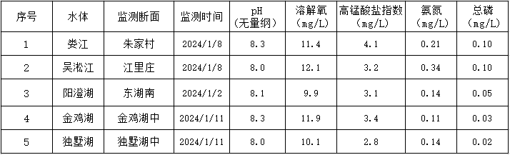 2024年1月蘇州工業(yè)園區(qū)地表水監(jiān)測(cè)結(jié)果
