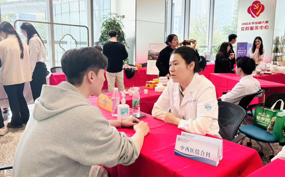 健康是幸福生活的基石,活動現場,蘇州大學附屬第四醫院的專家團隊為樓宇內員工提供愛心義診服務,耐心地為員工們解答健康疑問,提供個性化的健康建議。