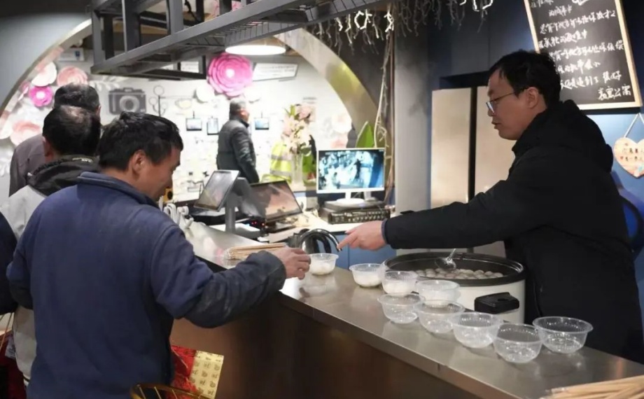 除了法律知識(shí)的普及、政策服務(wù)的宣傳,活動(dòng)現(xiàn)場(chǎng)還充滿了濃濃的節(jié)日氛圍。商務(wù)區(qū)黨工委為參與活動(dòng)的集宿區(qū)員工與建筑工人送上熱氣騰騰的湯圓,并將法治元素、黨建元素融入元宵祝福中。湯圓雖小,卻承載著滿滿的溫暖與關(guān)懷,讓這個(gè)元宵節(jié)變得格外暖心。此外,商務(wù)區(qū)兩新工委準(zhǔn)備了傳統(tǒng)冰糖葫蘆,“一串紅果送甜蜜,情暖工友慶元宵”,讓工人朋友在節(jié)日里感受到甜蜜與溫暖。