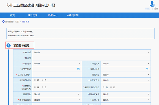 1.3.1. 點擊項目名稱后方的“申報”按鈕,打開項目基本信息完善頁面,填寫必填的信息