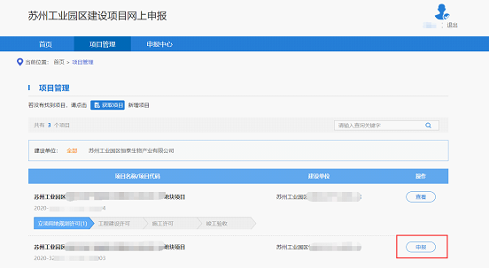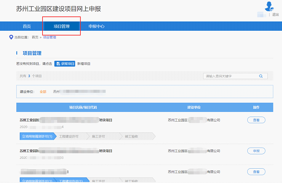 1.2.1. 進入項目管理模塊,與本單位綁定的已經(jīng)申報過的項目(新拿地、已有地新建等有發(fā)改項目代碼的項目)會自動展示在下面
