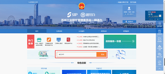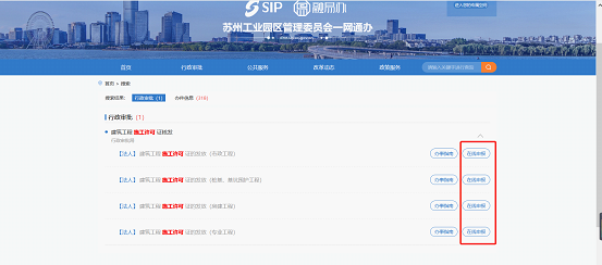 在“一網(wǎng)通辦”首頁搜索框中輸入“施工許可”相關關鍵字后,點擊搜索