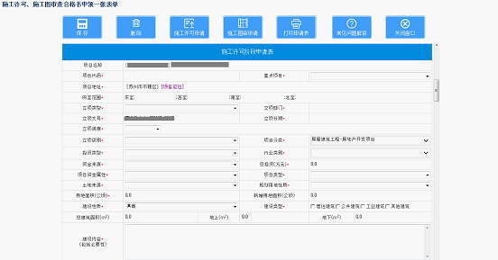 1.3.4. 填寫施工許可階段的申請表完成后提交后臺審核。
