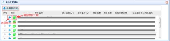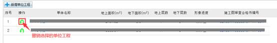 選擇本次施工許可申請所涉及的單位工程信息,已經(jīng)在本系統(tǒng)中申請過施工許可證的單位工程不能重復選擇,如果本次申請的單位工程不在列表中可通過“新增單位工程”加入;