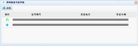 2、點擊用地批準手續(xù)、建設工程規(guī)劃許可、施工圖審查合格書后“+”(注圖1);在彈出窗口中點擊操作欄中“+”補選對應材料,點擊操作欄中