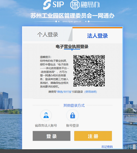 2. 進入登錄頁面,選擇“法人登錄”類型,選擇合適的登錄方式