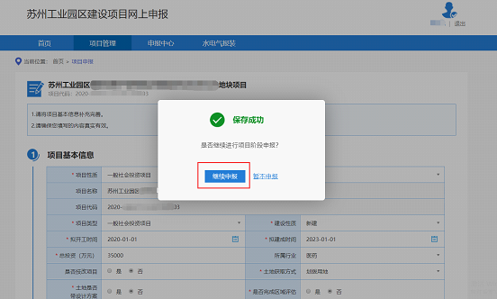 1.3.10. 填寫完成之后,點擊保存按鈕,保存成功之后點擊“繼續(xù)申報”