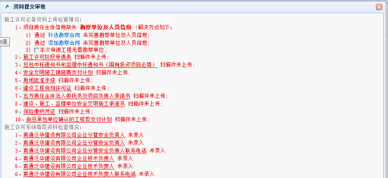 填報信息完整且資料齊備后點擊“施工許可申請”按鈕可以提交申請。提交申請時,系統(tǒng)將根據(jù)相關要求自動進行相關數(shù)據(jù)和資料的初步核驗,并給出核驗結果,必備內(nèi)容如果缺失將不能提交。