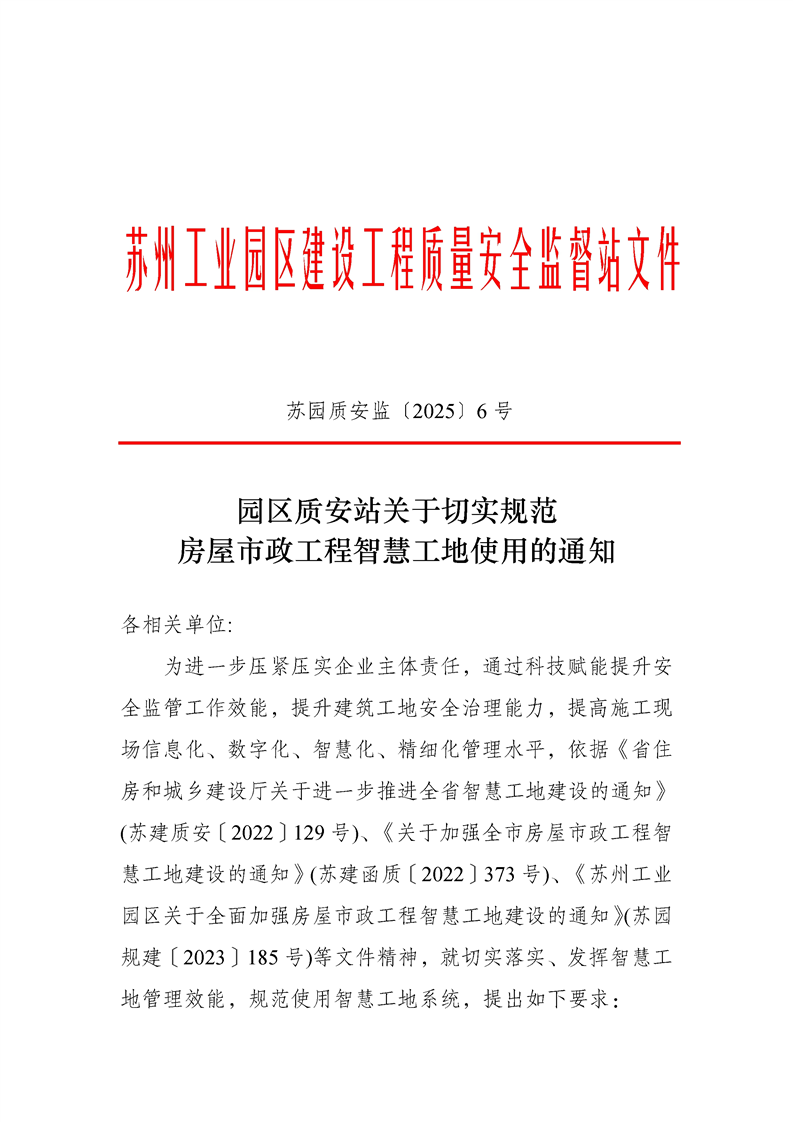 園區質安站關于切實規范房屋市政工程智慧工地使用的通知