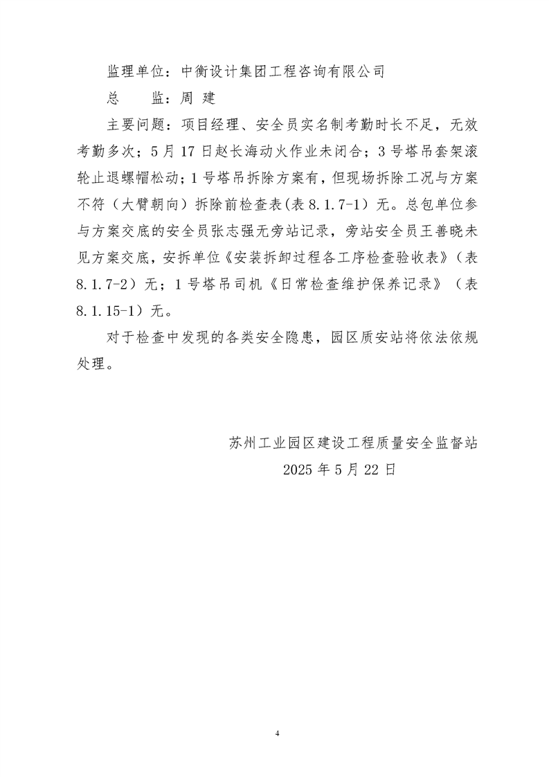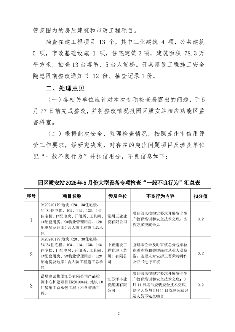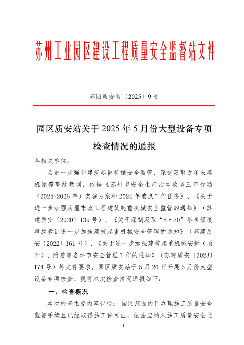 園區質安站關于2025年5月份大型設備專項檢查情況的通報