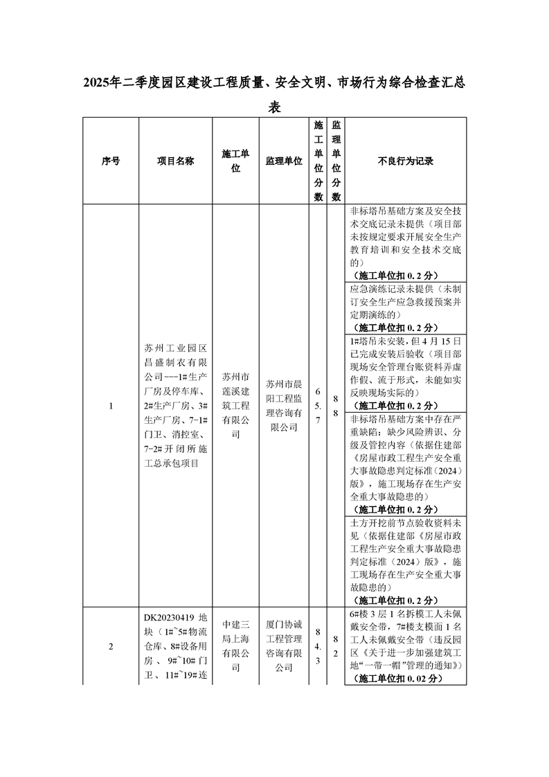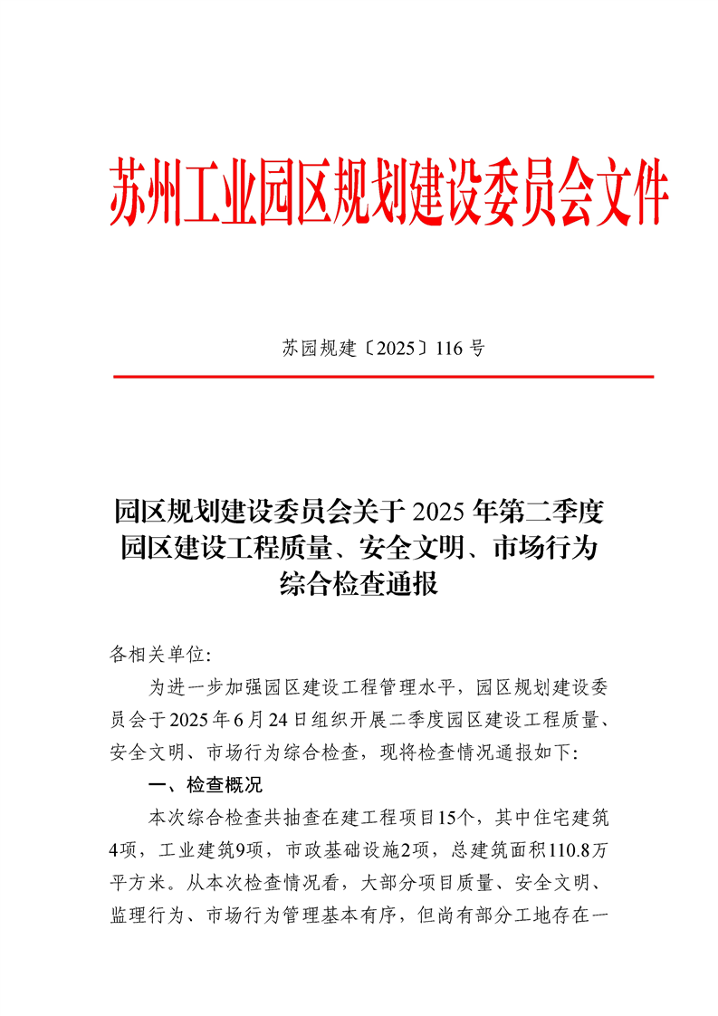 園區(qū)規(guī)劃建設(shè)委員會關(guān)于2025年二季度園區(qū)建設(shè)工程質(zhì)量、安全文明、市場行為綜合檢查通報