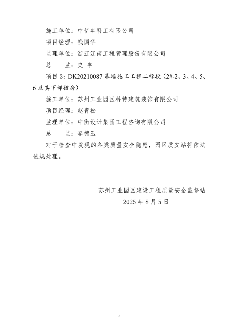 園區質安站關于7月份建筑質量安全綜合檢查暨夏季施工、防臺、防汛專項整治情況的通報