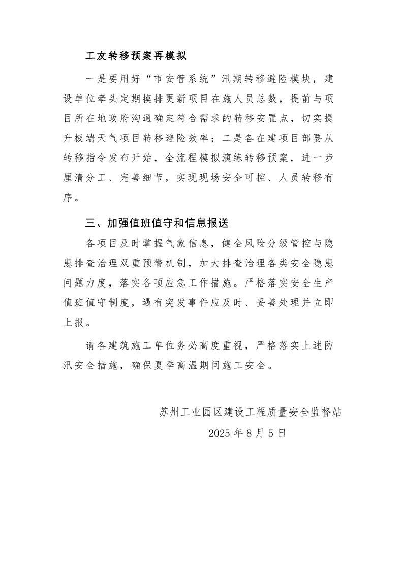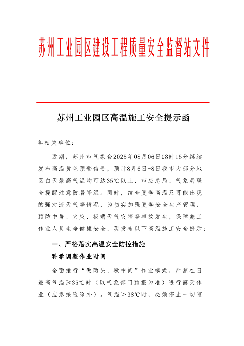 蘇州工業(yè)園區(qū)高溫施工安全提示函
