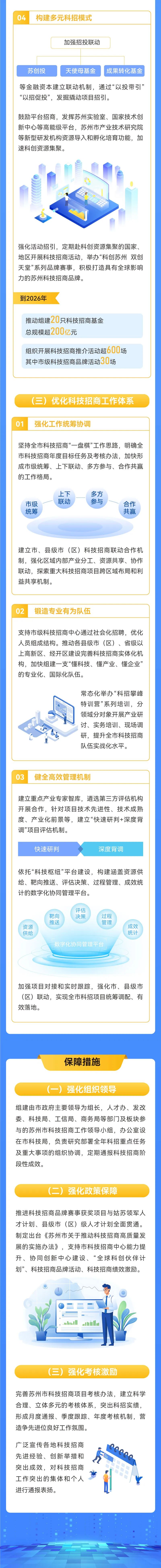為進(jìn)一步提高科技招商工作水平,增強(qiáng)我市對(duì)高端創(chuàng)新要素的吸引集聚能力,近日,市政府辦印發(fā)《蘇州市科技招商三年行動(dòng)計(jì)劃(2024~2026 年)》。