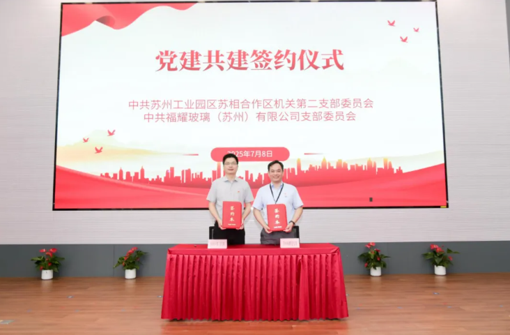 現(xiàn)場,中共蘇州工業(yè)園區(qū)蘇相合作區(qū)機(jī)關(guān)第二支部委員會與中共福耀玻璃(蘇州)有限公司支部委員會簽署黨建共建協(xié)議,雙方將以“結(jié)對共建”為契機(jī),共同探索創(chuàng)新黨建與業(yè)務(wù)融合的新模式、新機(jī)制,以常態(tài)化的聯(lián)建平臺,實(shí)現(xiàn)資源共享,推動福耀蘇州綜合發(fā)展實(shí)力再上新臺階。
