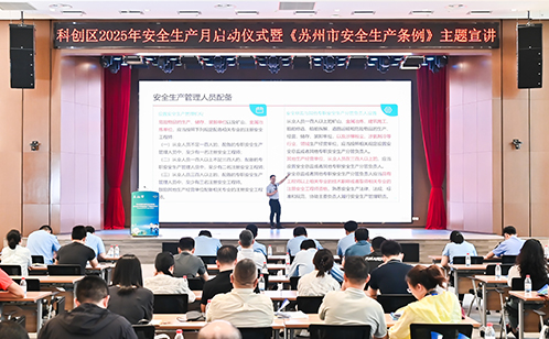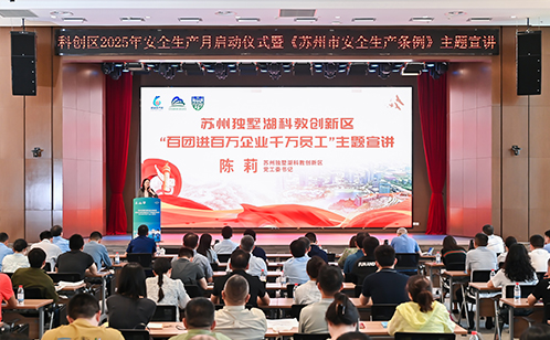 6月4日下午,蘇州獨墅湖科教創(chuàng)新區(qū)2025年安全生產(chǎn)月啟動儀式暨《蘇州市安全生產(chǎn)條例》主題宣講在蘇州納米城順利舉辦。科教創(chuàng)新區(qū)安委會各成員單位相關負責人、安全生產(chǎn)分聯(lián)盟、重點高校、科研院所、樓宇、載體、企業(yè)的代表參加活動。