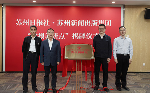 蘇州日報社黨委書記、社長,蘇州新聞出版集團有限公司董事長李勇,蘇州工業(yè)園區(qū)黨工委委員、管委會副主任、宣傳和統(tǒng)戰(zhàn)部部長朱江,蘇州工業(yè)園區(qū)宣傳和統(tǒng)戰(zhàn)部副部長、文體旅游局局長殷衛(wèi)東,蘇州獨墅湖科教創(chuàng)新區(qū)黨工委書記許文清,蘇州日報社黨委委員、副總編輯高巖,蘇州工業(yè)園區(qū)宣傳和統(tǒng)戰(zhàn)部副部長張蓁,蘇州工業(yè)園區(qū)斜塘街道黨工委副書記、辦事處主任楊淑瑾出席揭牌儀式。活動邀請了蘇州市政府研究室科研處處長成濤林,國家智庫·南京大學(xué)長江產(chǎn)業(yè)經(jīng)濟研究院特聘研究員,蘇州科技大學(xué)教授徐天舒參與調(diào)研。