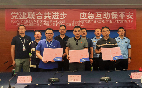 為進一步發揮黨建引領在環境應急處置工作中的突出作用,加強區域環境應急處置資源統籌整合,提升區域環境應急處置能力,7月10日,蘇州獨墅湖科教創新區機關第一黨支部、中共中新和順環保(江蘇)有限公司支部委員會以及中共蘇州工業園區清源華衍水務有限公司支部委員會,共同圍繞區域環境應急處置聯動互助工作,簽訂了“黨建結對共建”協議書。