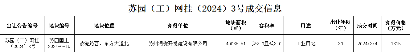 蘇園(工)網掛(2024)3號成交信息