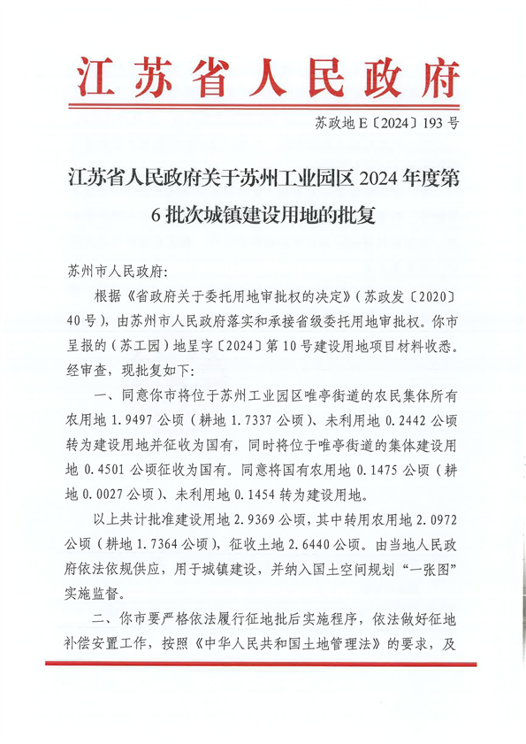蘇州工業園區2024年度第6批次城鎮建設用地-批文