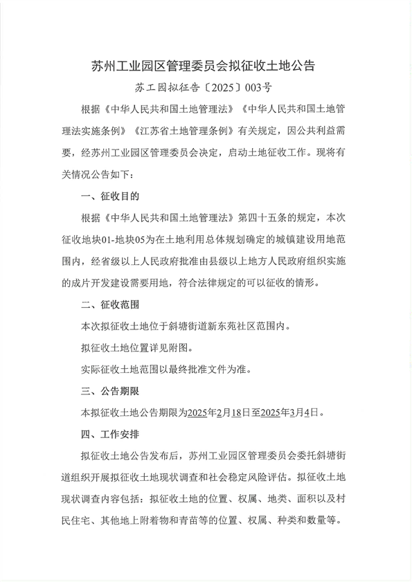 蘇工園擬征告〔2025〕003號--擬征收土地公告