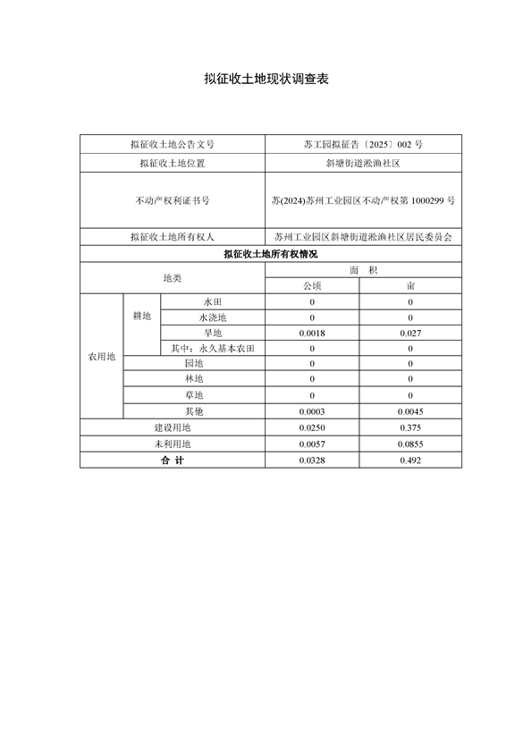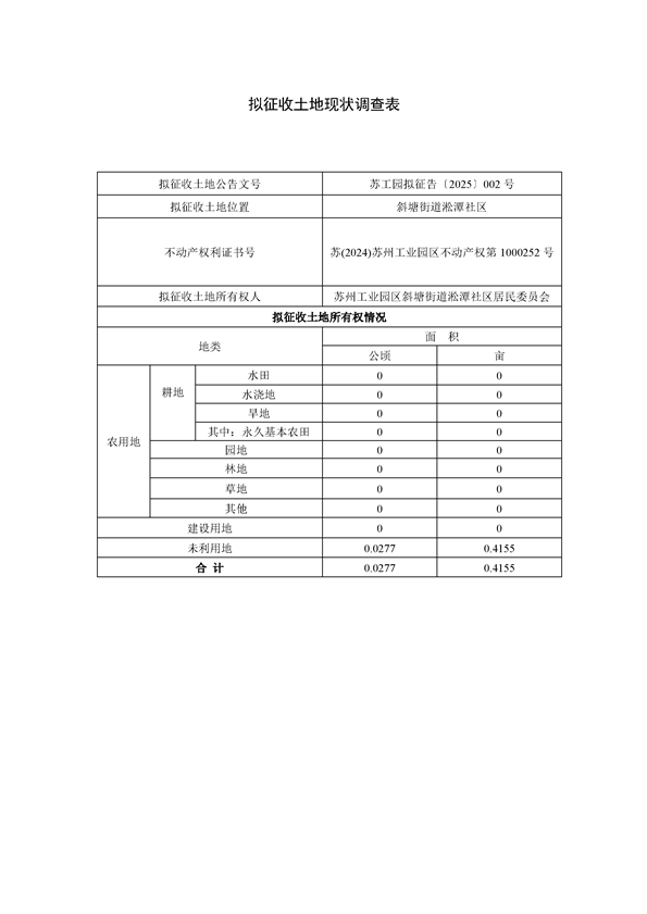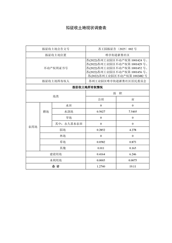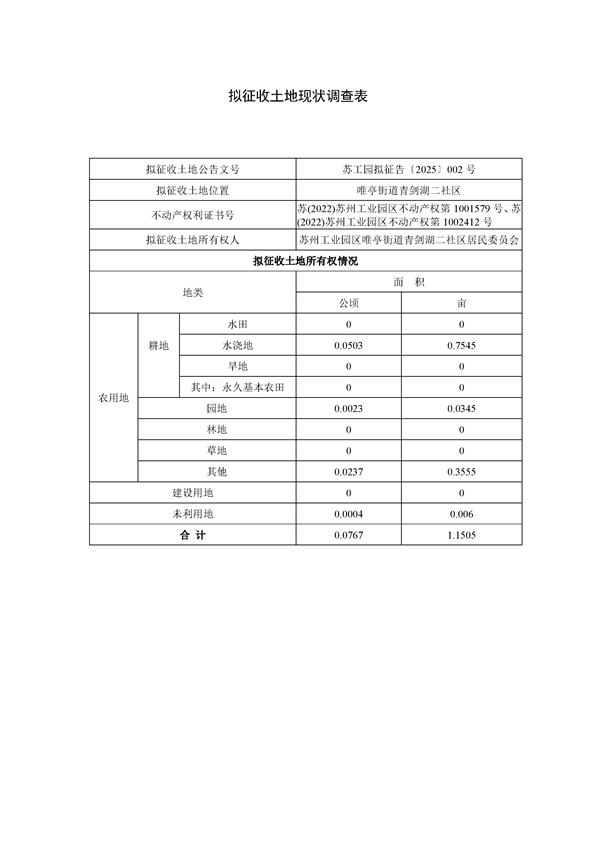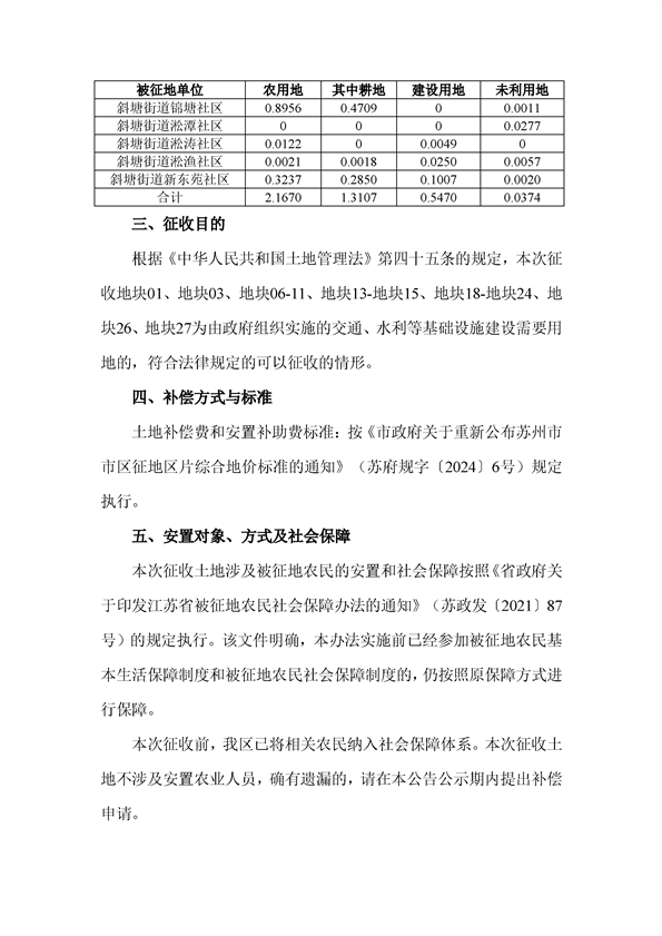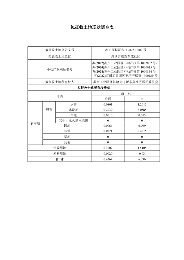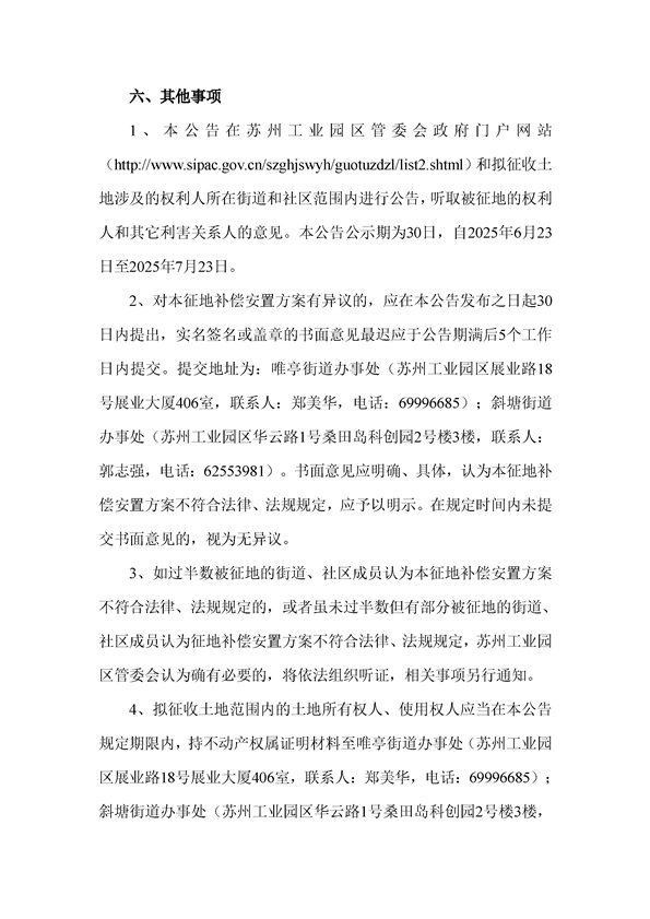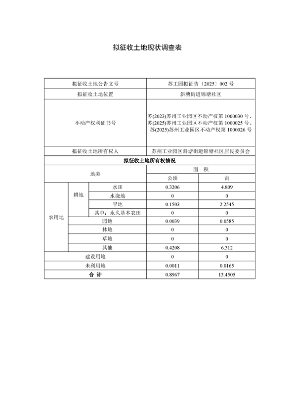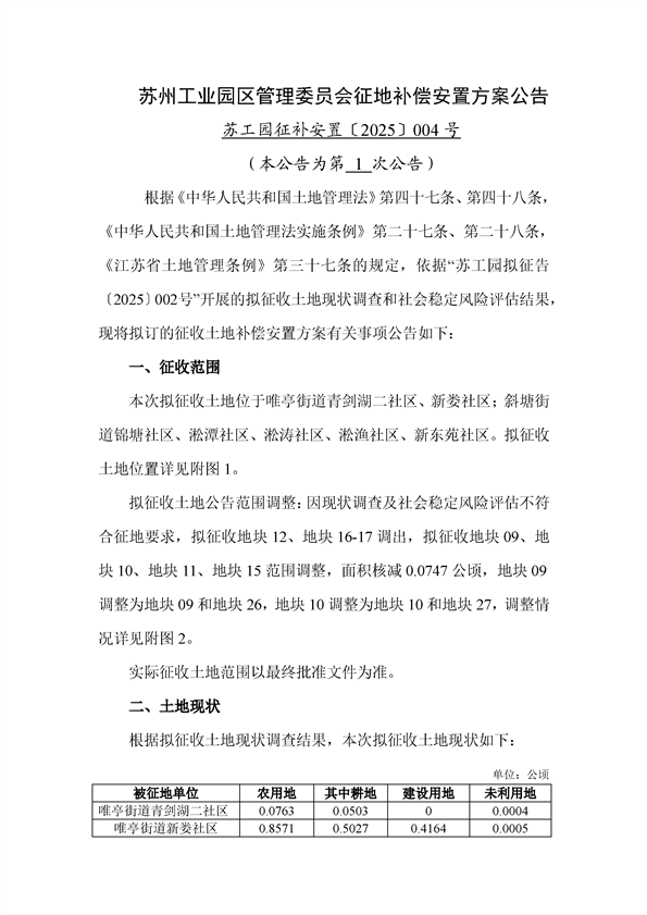 蘇州工業園區2025年度第4批次城市建設用地--蘇州工業園區管理委員會征地補償安置方案公告(蘇工園征補安置〔2025〕004號)