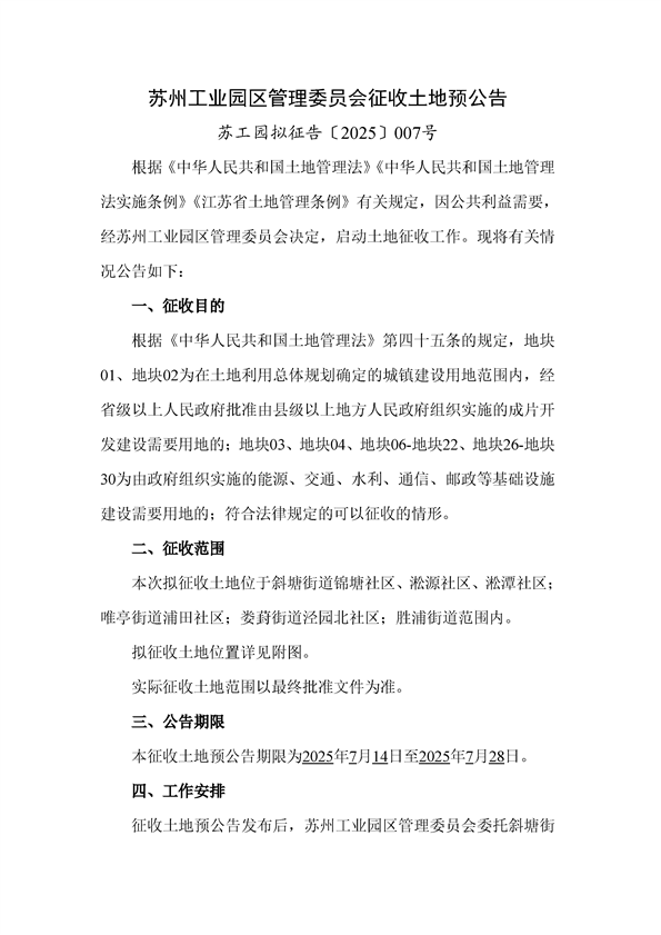 蘇工園擬征告〔2025〕007號(hào)--征收土地預(yù)公告