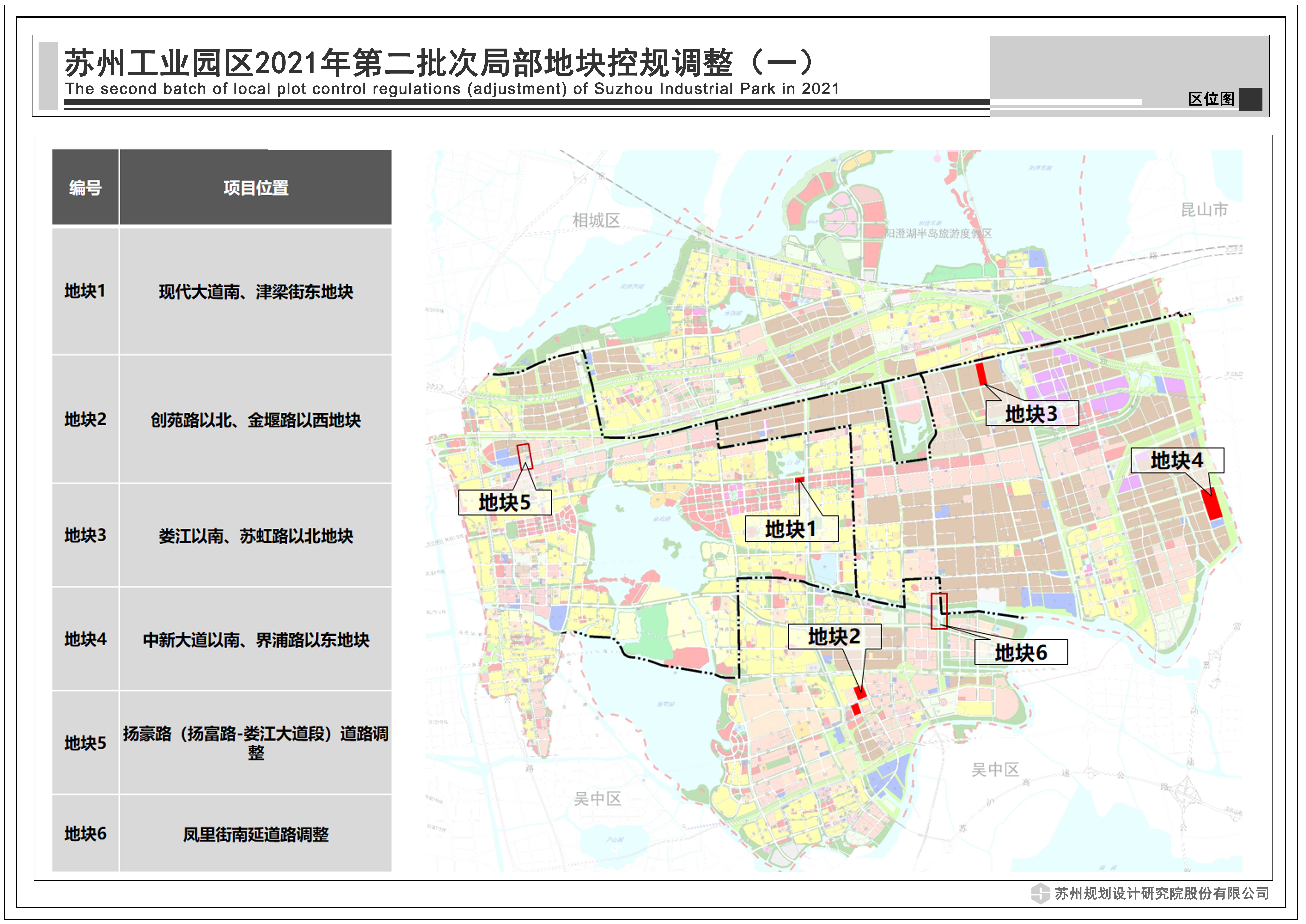 蘇州工業(yè)園區(qū)2021年第二批次局部地塊控規(guī)調(diào)整(一):共包括6個地塊,總用地面積0.64平方公里,詳見附圖區(qū)位圖。