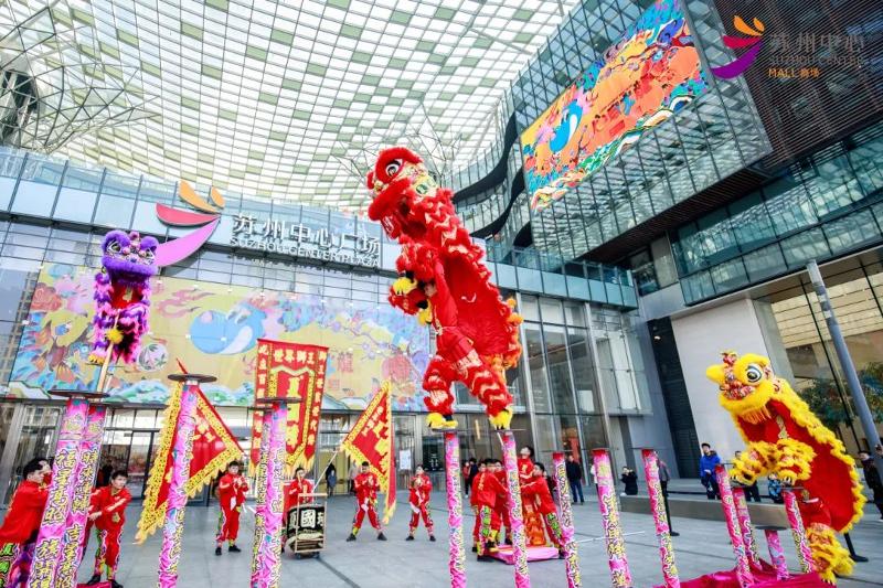 蘇州センターショッピングモールと誠品生活蘇州は春節獅子舞を開催し、圓融時代広場の「龍舞と獅子舞」活動は素晴らしいパフォーマンスとおめでたいムードをもたらした。