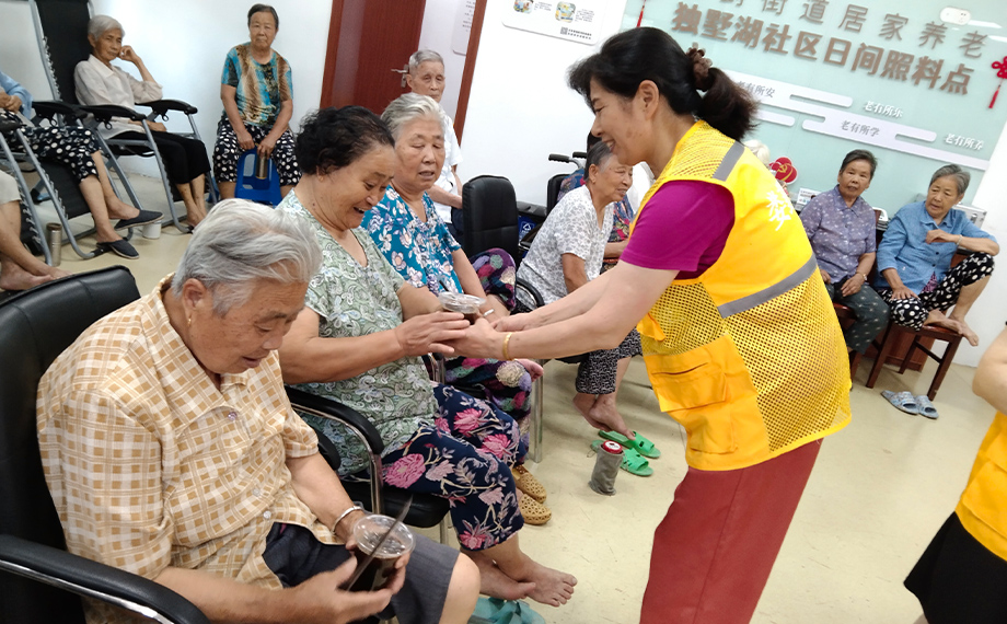 8月2日,唯亭街道綜合為老服務(wù)中心的會員收到微信通知:活動大廳周末也對外開放了。除了延長開放時間,多個社區(qū)養(yǎng)老服務(wù)設(shè)施還為老人提供綠豆湯、酸梅湯和涼茶等解暑飲品;東湖大郡日間照料中心在大廳顯眼處擺放藿香正氣水、降溫頭貼和茶包供有需求的老人自取;熙岸社區(qū)日間照料中心、鳳凰城社區(qū)日間照料中心等養(yǎng)老服務(wù)設(shè)施舉行“手繪團(tuán)扇”等活動,給炎炎夏日增添了一絲趣味;四季新馨湖園日間照料中心別出心裁地組織老人制作并品嘗涼面,幫助老人刺激食欲、增加胃口......室外艷陽高照蟬鳴悠長,室內(nèi)歡聲笑語不絕于耳,工作人員們細(xì)心周到地為老人們提供各種服務(wù),讓老人們體會到具象的關(guān)愛與尊重。