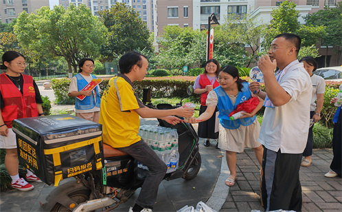 歐典社區不斷在新業態新就業群體黨建工作上積極探索,通過開展一系列活動傳達對新業態新就業群體的關注,提升其社區歸屬感以及社區參與的積極性,使其更好的融入基層社會治理。今年七月,歐典社區在美團湖東站舉行了“小典典”志愿服務隊授旗儀式,成立社區的新業態新就業群體志愿服務隊伍。在夏送清涼公益行捐贈儀式上,新業態新就業群體代表李煜烽在發言時說道:“非常感謝大家的關心關愛,未來,期待我們星騎士為主力的“小典典”志愿服務隊能積極參與到歐典社區新街口商業街商圈治理行動中來,發揮走街串巷獨特優勢,樹榜樣力量,揚社區‘新’風?!?/p>
