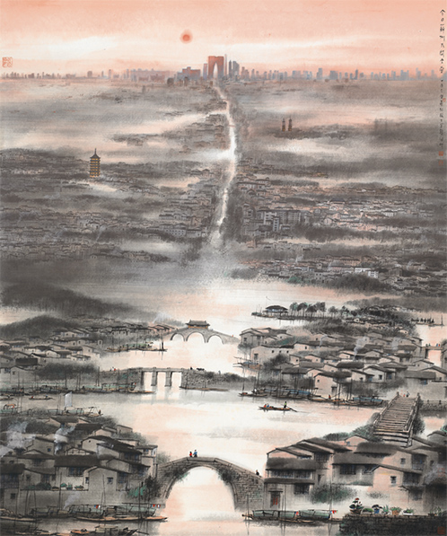 楊明義是蘇州籍畫家,他在80歲高齡創(chuàng)作的水墨作品《今日蘇州人間天堂》在此次展覽中亮相。該作品由近及遠,描繪出蘇州古今不同的時代風貌——既有小橋流水、古塔園林,也有蘇州工業(yè)園區(qū)的繁華盛景,體現了江南水鄉(xiāng)的發(fā)展變遷。“我去過新加坡,也因為藝術的淵源,對新加坡有著深厚的感情。藝術需要交流,通過一次次互動,相信未來中新文化合作必將結出更加豐碩的成果。”楊明義說。