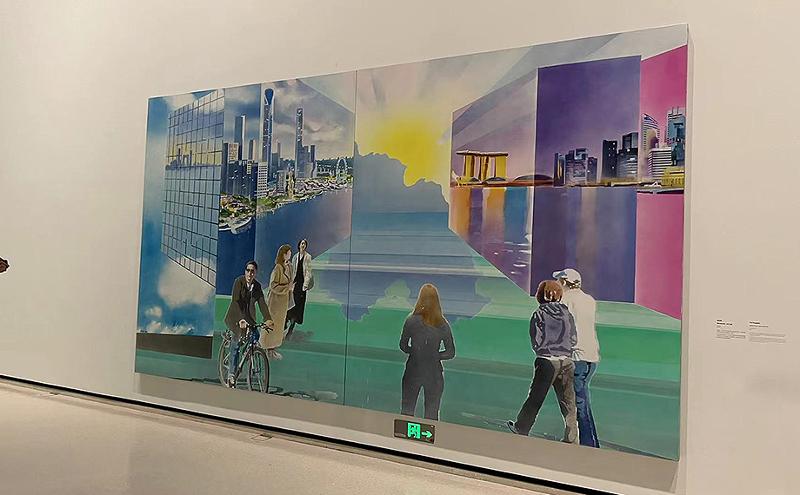 此次展覽中,中國新銳藝術家裴詠梅基于“非凡之城——蘇州工業園區”,創作了其《都市未來系列》的最新力作。畫面中,園區地標建筑東方之門、國金中心與新加坡地標建筑帆船酒店等隔空相望——非凡之城的一座座地標拔地而起,撐起了現代之城的城市筋骨和靚麗風景。行走的路人,象征著優秀人才在園區這片創新創業熱土施展才華、實現夢想。
