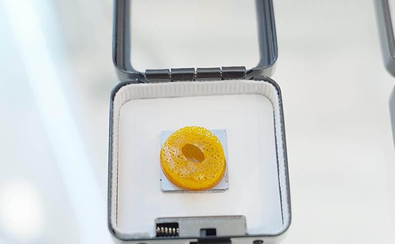 展臺中,一塊小小的陶瓷超材料模型玲瓏剔透,而其內部則是肉眼無法觀察的蜂窩狀結構。“在微納應用下,我們可以模擬展現一些新材料的結構特性,從而助力新材料的研發。目前,公司與多家客戶達成了合作,可以輔助實現一些全新課題的研發。譬如這款陶瓷超材料的結構打印,就為不同結構的新材料研發提供了新的可能性?!敝芏Y俊說。