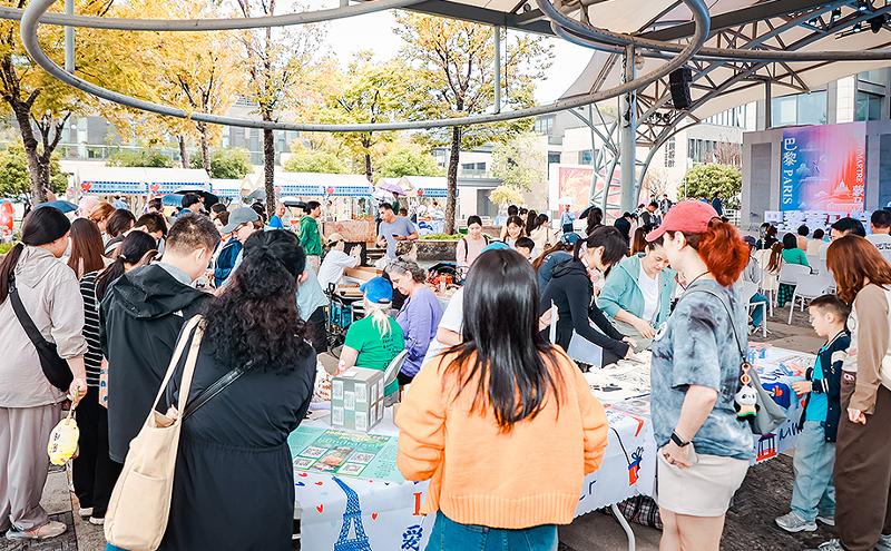 同樣在節(jié)日期間備受追捧的,還有李公堤?“堤調(diào)de雅集”中法文化市集。活動持續(xù)了三天,匯集藝術(shù)、潮流、美食等元素,精選了30余家法式主題、江南非遺工藝、時尚文創(chuàng)品牌以及網(wǎng)紅美食飲品等,同時串聯(lián)了李公堤文創(chuàng)街區(qū)的文化展館、創(chuàng)意空間,讓傳統(tǒng)與現(xiàn)代、傳承與創(chuàng)新融為一體,為市民游客帶來時尚、新潮、趣味的浪漫生活體驗。