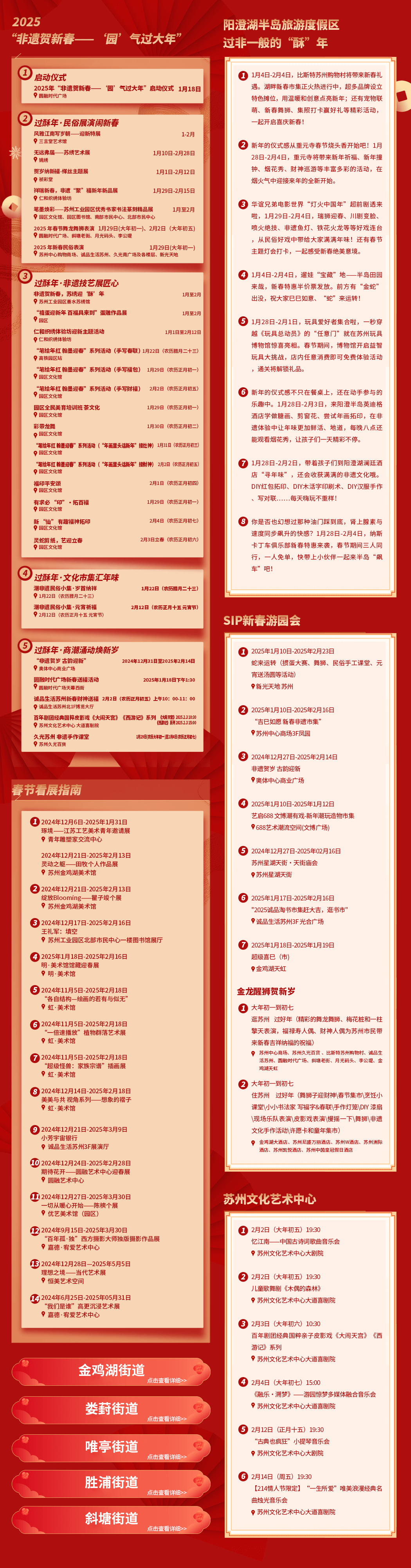 這個春節,“DeepSeek”爆火網絡,登上熱搜第一!聽說DeepSeek十分“有個性”“不說套話”,正值新春佳節,布寶可要好好和它嘮嘮嗑。 DeepSeek可真是太懂園區啦!作為時尚潮流的現代化城市,園區端出“游住購行”一站式新春盛宴,各大商圈聯動景點,打響“新春鬧市集”品牌,營造充滿年味與文化韻味的歡聚體驗,讓市民游客感受非一般的“酥”年。下面跟著DeepSeek一起玩轉“年味版”園區吧!游在園區 好吃好逛春節期間,金雞湖景區熱鬧非凡,成為游客們歡度新春、體驗豐富游玩項目和夜游魅力的熱門打卡地。(圖片來源:小紅書賬號靜靜的艾敏河、??、發呆地圖)白天踏入金雞湖景區,仿佛步入了一個現代與自然完美... [詳細]