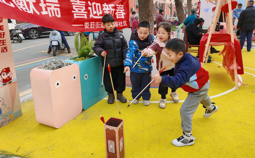 活動現(xiàn)場人頭攢動,處處洋溢著濃厚的節(jié)日氛圍。美食攤位上,海棠糕以其獨(dú)特的口感和制作工藝吸引了眾多居民駐足品嘗,非遺美食冰糖葫蘆更是讓人們感受到了傳統(tǒng)文化的魅力;迎新游戲區(qū)同樣熱鬧非凡,滾滾樂、投壺等游戲吸引了眾多居民熱情參與,大家齊心協(xié)力,歡笑聲、呼喊聲交織在一起;磨刀、縫補(bǔ)、配鑰匙、修鞋等傳統(tǒng)手藝的攤位前排起了長隊(duì),大家一邊等待,一邊嘮著家常,盡情享受著“家門口”的便利,感受著鄰里間的溫暖;新年拍照打卡點(diǎn)更是成為了居民記錄美好瞬間、留下珍貴回憶的地方,伴隨著相機(jī)快門的清脆聲響,新一年的福氣與喜悅被定格。
