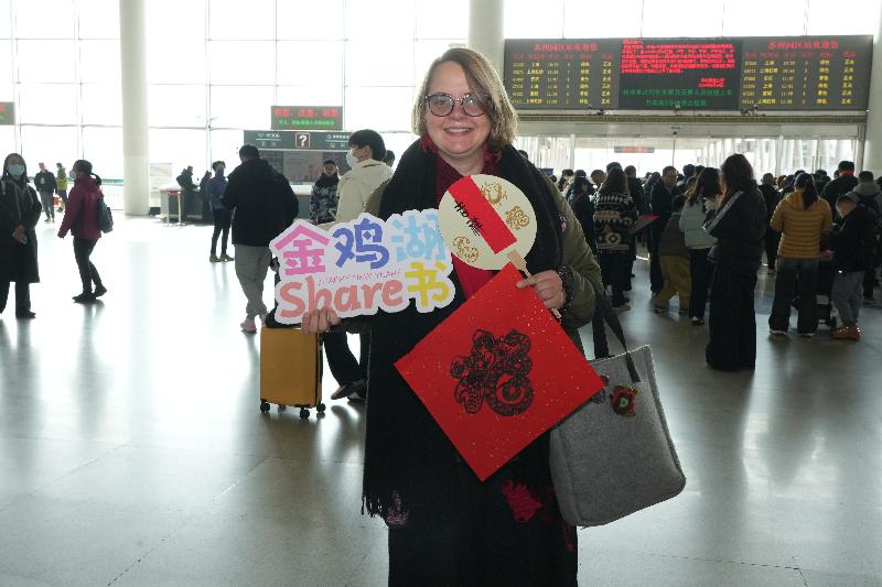 在園區公共文化中心舉辦的“非遺賀新春潮趣過大年”春風行動現場,書法、拓印等傳統文化展示體驗吸引了許多市民圍觀,Karolina Pawlik也是其中之一。“我對中國的拓印、書法很感興趣,還專門研究過。現場,工作人員演示上墨、鋪紙、拓印等環節,人們在等待制作的過程中,可以感受到非遺傳承的深厚底蘊。我能在火車站看到非遺的展示、制作,覺得非常驚喜和感動。”