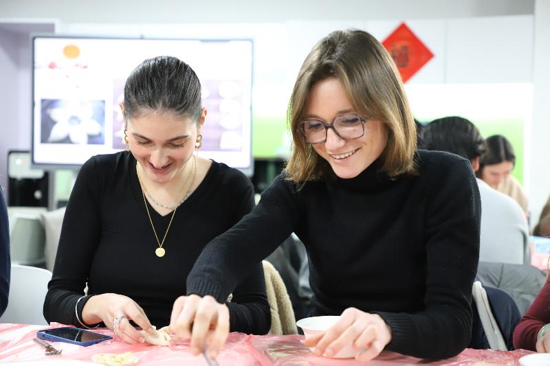 新春佳節,美食是必不可少的一環,而餃子則是春節代表性食物之一。春節前夕,SKEMA商學院蘇州校區組織了一場包餃子活動。來自法國、俄羅斯、喀麥隆等國家的40名留學生齊聚一堂,體驗味蕾上的“中國風”。“來到園區還不到一個月,我就體驗了包餃子,太幸運了!一開始,我覺得包餃子有點難,我不太會把餃子皮捏緊,但熟練之后就好多了。我們包了豬肉餡、韭菜餡的餃子,非常美味。”來自意大利的Anna Martinato說。提及中國春節,Anna Martinato表示,這是一個非常有名的節日,她了解貼春聯、舞龍舞獅、放鞭炮等傳統,但今年才第一次有機會感受。“蘇州被稱為‘東方威尼斯’,我對蘇州的印象非常好,在這里學習、生活也非常便利。春節期間,我在蘇州看到了很多春節獨特的裝飾,園區的商場、街道節日氛圍濃厚,我非常開心在這里過年。”