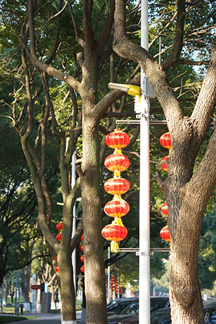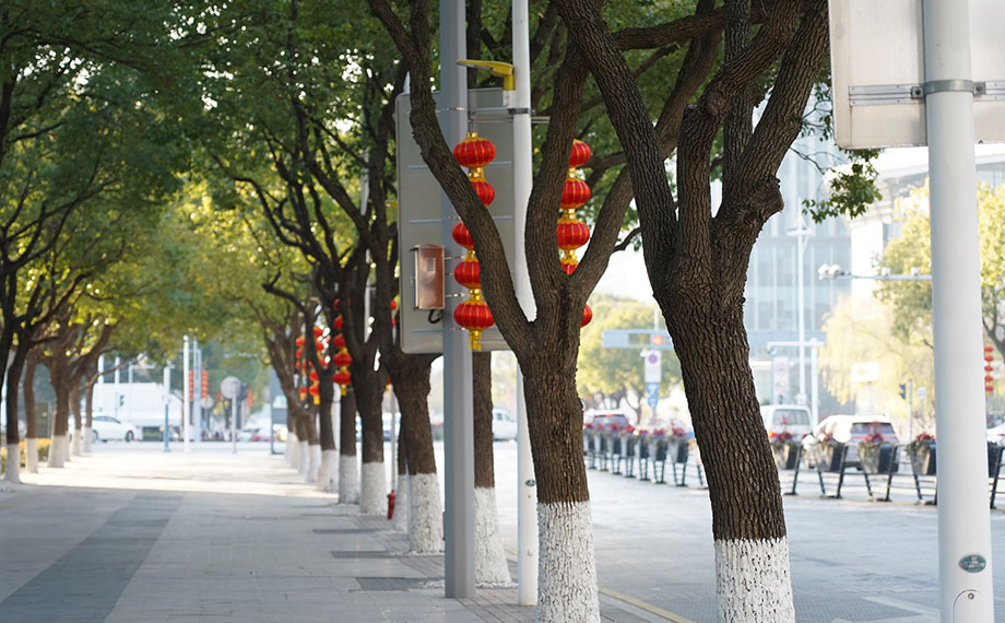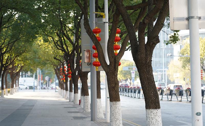 在蘇州大道、圓融環(huán)路等主干道旁,一盞盞大紅燈籠高高掛起,沐浴著冬日的暖陽,在微風(fēng)中輕輕搖曳,仿佛在向人們訴說著新年的故事。