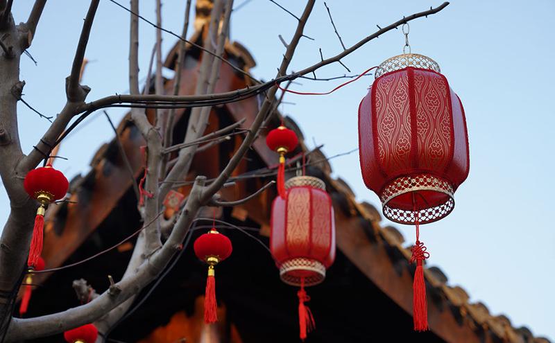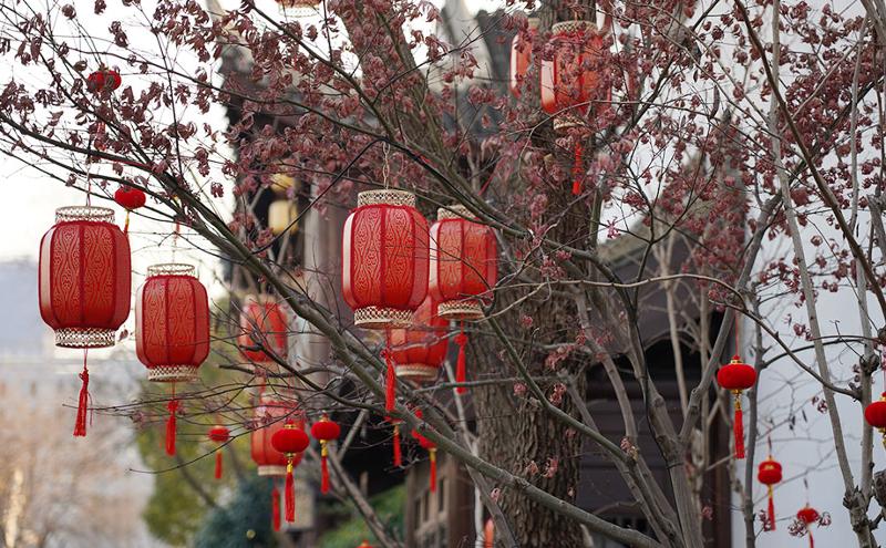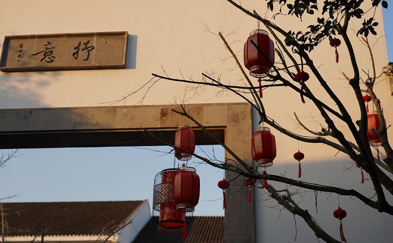在斜塘老街,各式各樣的燈籠與傳統(tǒng)的蘇式建筑相得益彰,為原本因季節(jié)更迭而顯得枯寂的樹木點綴上鮮艷的色彩。