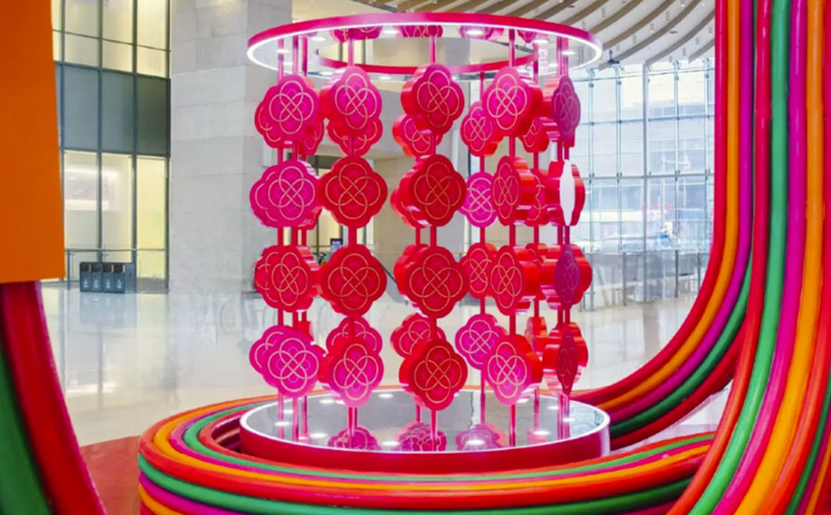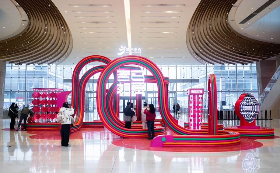 在蘇州中心商場,被古人賦予美好寓意的中國結(jié)以靈蛇造型在一樓中庭驚艷亮相,帶來“靈蛇繞福,凝心啟運”的新年祝福,靈蛇的體態(tài)蜿蜒流暢,與中國結(jié)的線條完美融合,形成了獨特的視覺美感。