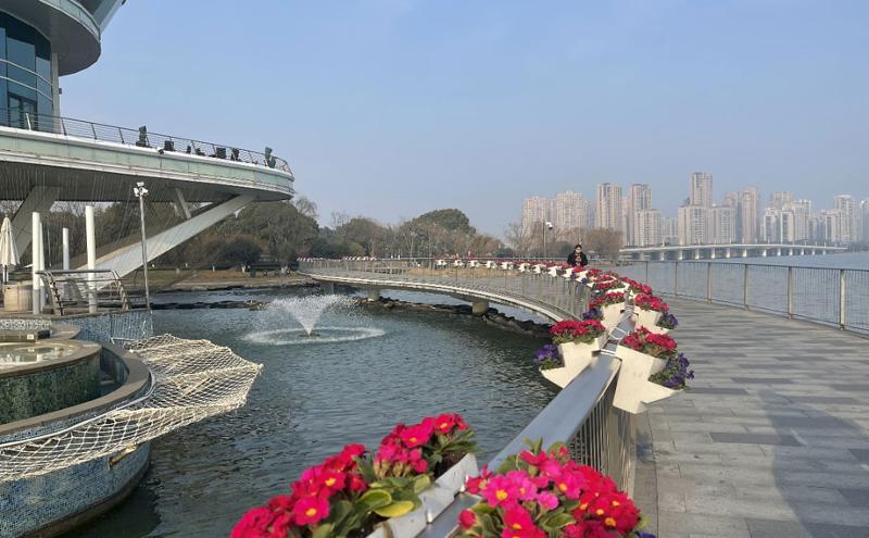 各色的角堇花箱呈陣列式間隔擺放,勾勒出城市彩色線條,用熱鬧喜慶的花卉美景點亮新春環(huán)境,拉滿春節(jié)氛圍感。