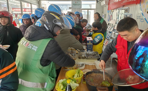 中午時分,忙碌了一上午的外賣小哥們陸續走進驛站,圍坐在桌前,享受著這份特別的“年夜飯”。“平時忙著送餐,很少有機會坐下來好好吃頓飯,更別說和同事們一起聚餐了。今天能在驛站吃到這么豐盛的火鍋,真的特別感動。”一位外賣小哥笑著說道。大家一邊品嘗著美味的火鍋,一邊分享著工作中的趣事和生活中的點滴,歡聲笑語中充滿了溫馨與感動。寒冷的冬日,一頓熱氣騰騰的火鍋,不僅暖了胃,更暖了心。