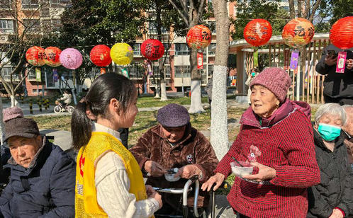 在美食兌獎攤位前,大家排隊領取不同的美食小吃,熱氣騰騰的湯圓、奶香撲鼻的爆米花、酸甜可口的冰糖葫蘆都散發著誘人的香氣,團員志愿者一邊煮著湯圓,一邊和居民聊天。芝麻餡的香甜軟糯,花生餡的醇厚濃郁,居民們品嘗著不同口味的湯圓,“星寶”志愿者們將湯圓送到居民手中,大家吃著甜甜的湯圓,感受著團圓的溫暖。