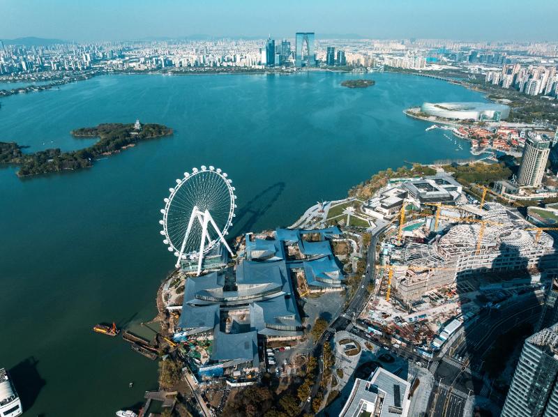 作為蘇州新的城市地標,“蘇州之眼”于近日正式對外開放。項目位處金雞湖右岸,由中銳集團攜手全球知名設計公司匠心打造,是全球第八座回轉式太空艙摩天輪,也是亞洲最大的水上摩天輪。“蘇州之眼”以128米的高度刷新城市天際線,可360度俯瞰金雞湖、園區(qū),乃至蘇州全景。