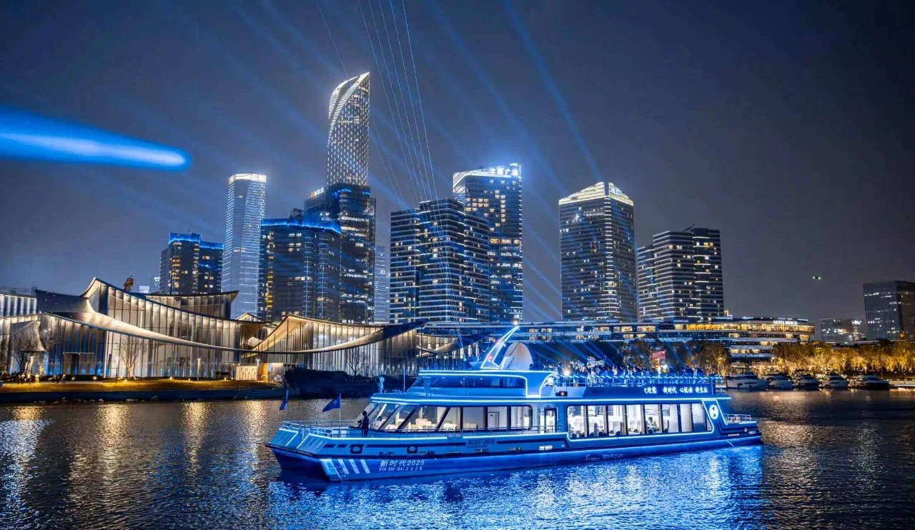 園區(qū)水資源豐富,“水上文章”大有可為。近年來,新時代集團持續(xù)優(yōu)化金雞湖、獨墅湖、斜塘河、中央河等水上游線,全力推進水上繁榮。在傳統(tǒng)航線基礎上,結合“蘇州之眼”啟幕,煥新開發(fā)右岸碼頭,打造全新的水上游航線。此次新投用的金雞湖雙體游船參考歐洲熱門游船船型設計定制,在抗風浪性、節(jié)能環(huán)保、抗噪音等方面擁有更好的優(yōu)勢,可全方位欣賞金雞湖絕美風光。該航線包含日游和夜游,日游為登島線,夜游為環(huán)湖線,重點串聯園區(qū)核心景觀和地標,滿足游客的多元體驗需求。