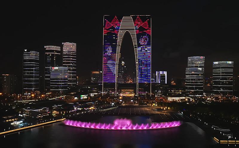 與“蘇州之眼”隔湖相望,金雞湖音樂噴泉作為蘇州旅游的傳統(tǒng)“打卡”項(xiàng)目,同樣讓人流連忘返。