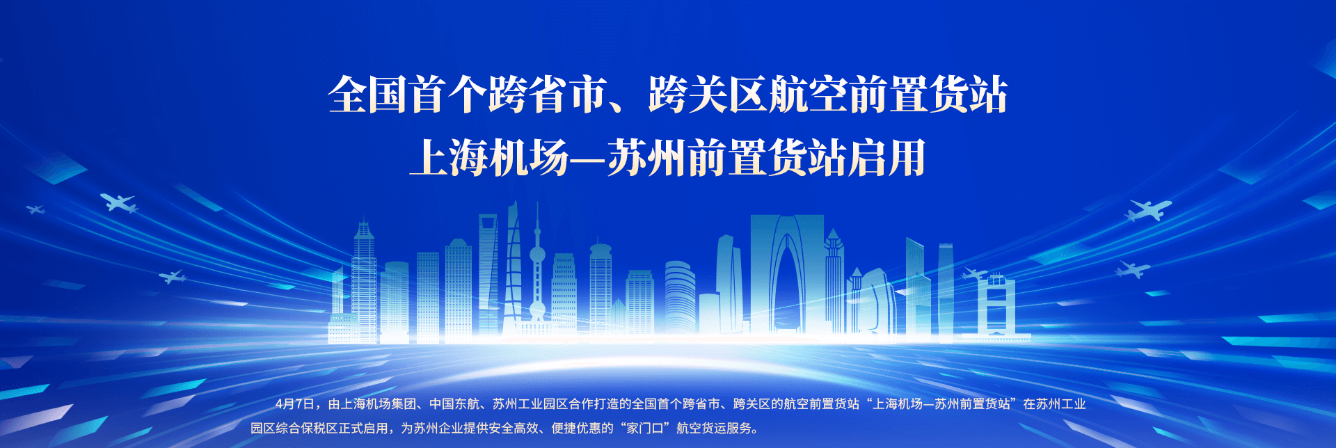 4月7日,上海機場—蘇州前置貨站在蘇州工業園區綜合保稅區正式啟用,這是全國首個跨省市、跨關區的航空前置貨站,較常規模式節約物流時間12—24小時,可降低地面物流成本10%-30%,將為江蘇省乃至長三角周邊企業提供“家門口”航空貨運服務。