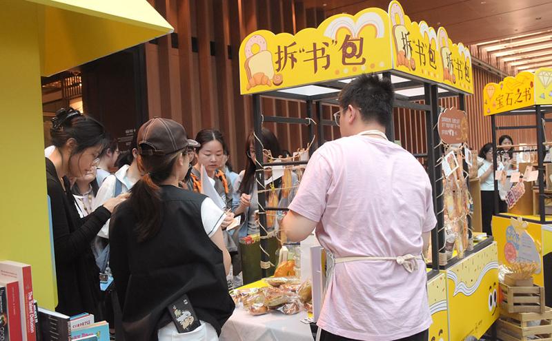 巴斯克蛋糕、窯烤堿水球、德腸面包、拇指大小的可頌,還有各種披薩、面包片……拆“書”包展位上,空山手作主理人吳昊帶來了幾十種產品。來往市民現場寫下心中關于閱讀與美食的奇思妙想,就能領取一份“書”包,開啟味蕾的神奇之旅。在這個懂烘焙的文藝青年看來,麥香與書香有著殊途同歸的默契?!懊姘鼭M足口腹之欲,閱讀充盈精神世界,拆‘書’包將二者有機結合,為大家提供雙重體驗。我們希望人們不僅能夠吃到美味的面包,而且能夠獲得精神上的補給。此次參與全民閱讀系列活動,我們也是希望把這樣的生活理念和食品態度與更多人共享!”